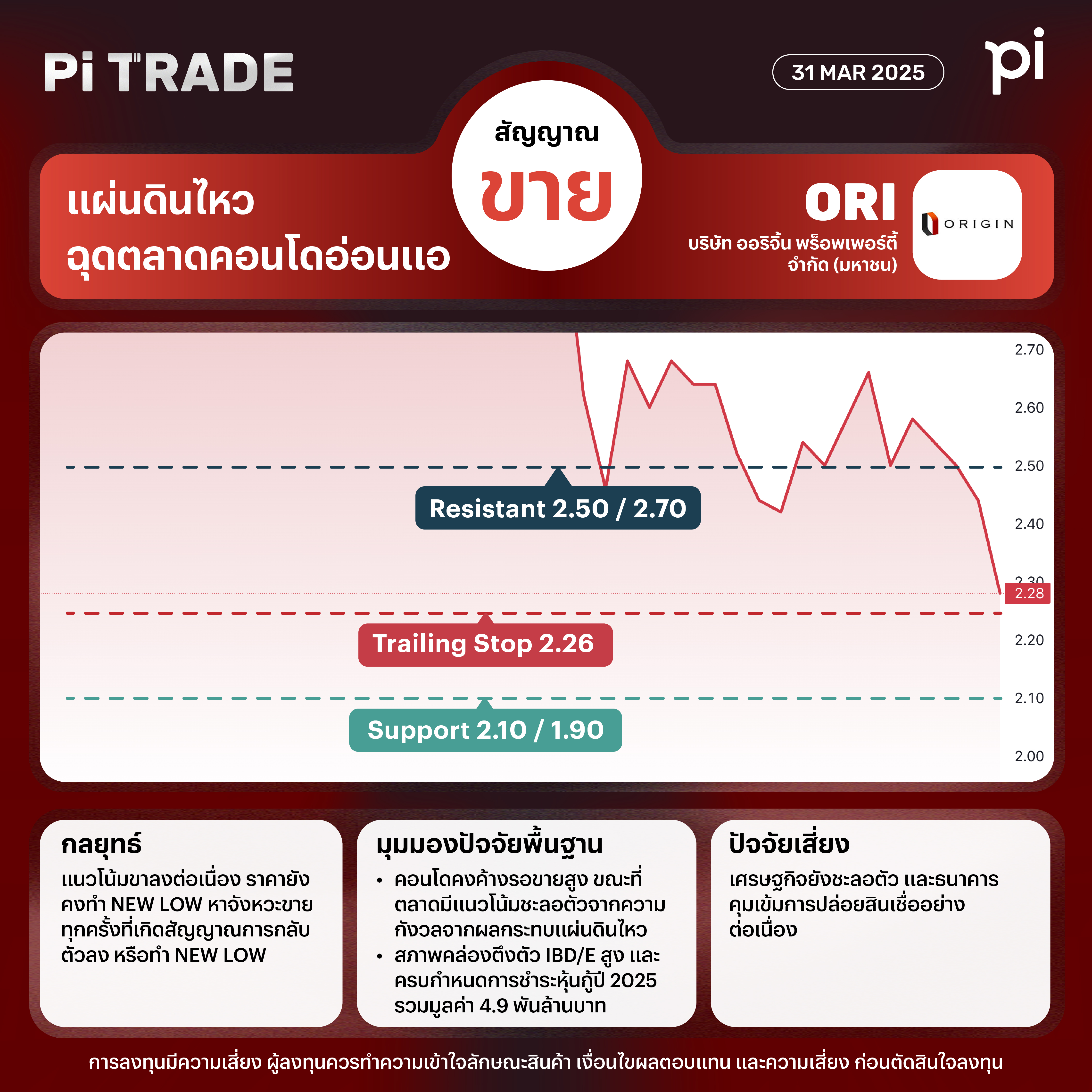 Pi TRADE : ORI (ขาย) : แผ่นดินไหวฉุดตลาดคอนโดอ่อนแอ