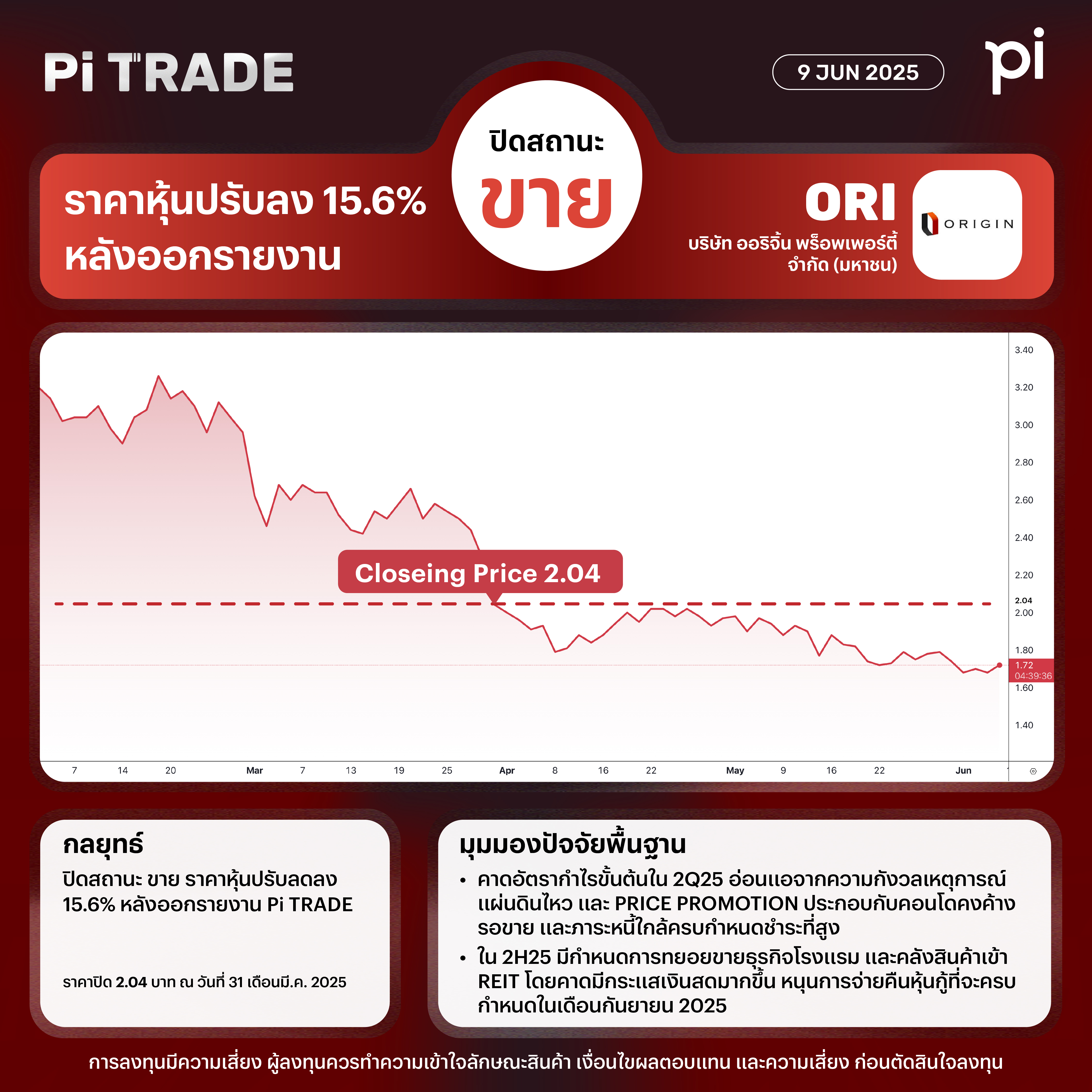 Pi TRADE ORI : ปิดสถานะ : ขาย : ราคาหุ้นปรับลง 15.6% หลังออกรายงาน